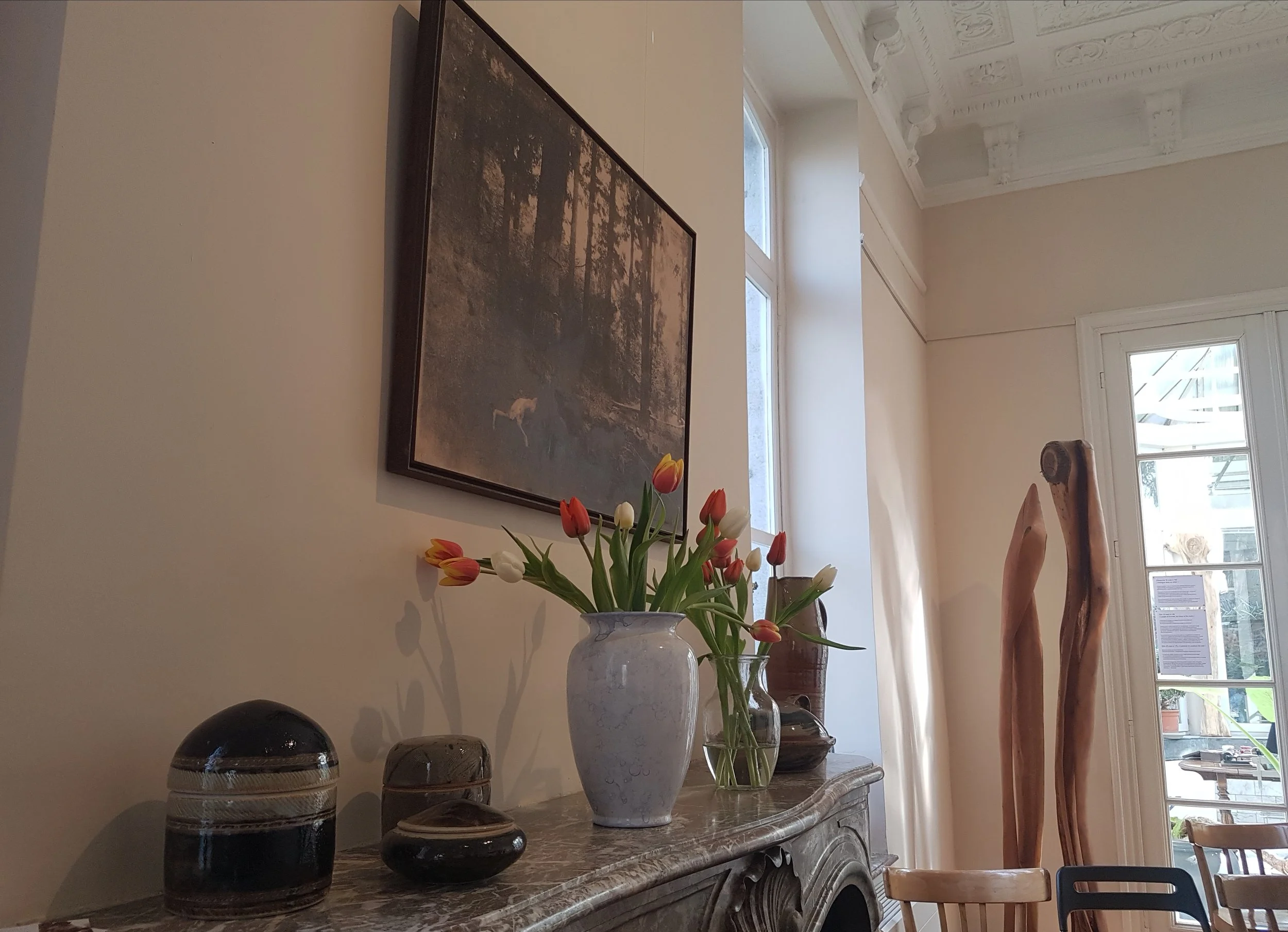 Je dispose actuellement d'un espace d'exposition permanent à Welkenraedt (Hoof 86 - chez moi) jumelé à un lieu de développement personnel et de bien être (le Fenil).